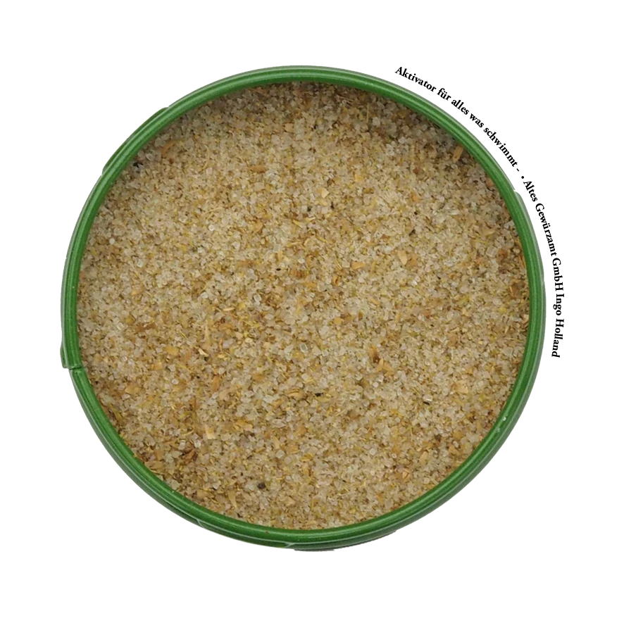 Verwendung: für Fisch- und Schalentiere | Zutaten: Steinsalz (Deutschland), Rohrzucker weiß, Pfeffer weiß, Korianderkörner, Anissamen, Fenchelsaat, Kümmel, Thymian | Allergenkennzeichnung: keine; kann produktionsbedingt Spuren von Senf und Sellerie enthalten | Aufbewahrungshinweis: dunkel, trocken, kühl und luftdicht verschlossen lagern; nicht über oder direkt dem Herd aufbewahren, da Wärme und Feuchtigkeit das Aroma vermindern können