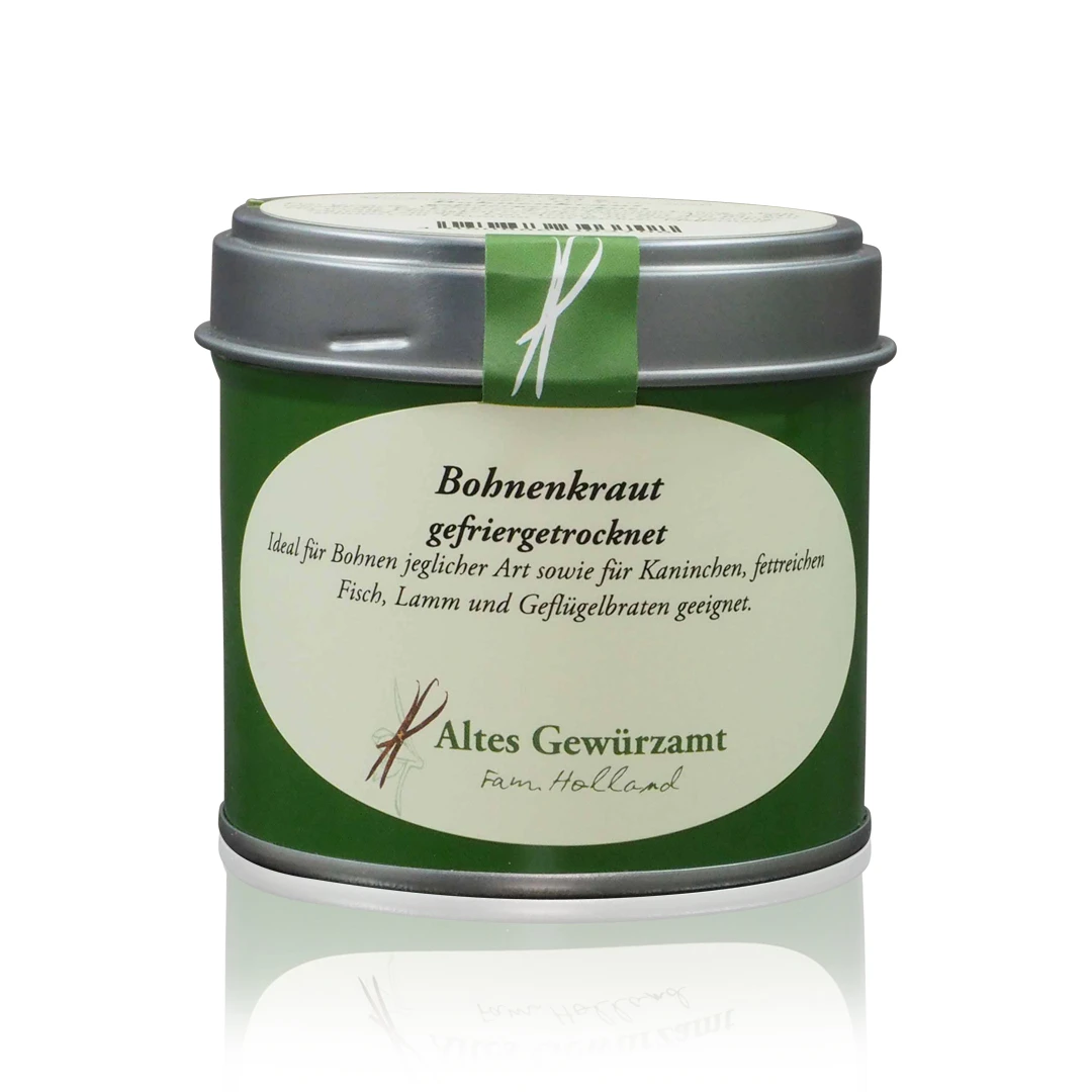Mit diesem gefriergetrockneten Bohnenkraut kaufen Sie ein von Altes Gewürzamt Ingo Holland sorgfältig ausgewähltes und zusammengestelltes Gewürz in bester Qualität. Gründer Ingo Holland – selbst langjähriger Spitzen- und Sternekoch – hatte irgendwann genug davon nur Gewürze kaufen zu können, die nicht seinem Qualitätsanspruch gerecht wurden. So entschloss er sich, selbst auf die Such nach besten Qualitäten von Gewürzen aus aller Welt zu gehen und diese in seiner eigenen Manufaktur handwerklich, schonend und sorgfältig zu verarbeiten. Berühmt auch seine Gewürzmischungen für Chili con Carne oder das italienisch toskanische Gewürzmischung für Pasta.