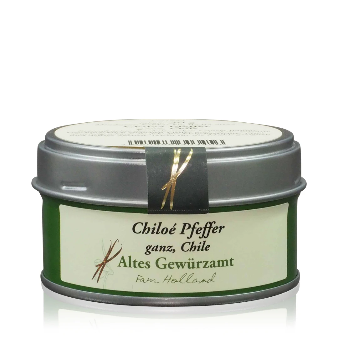 Mit diesem Chiloé Pfeffer kaufen Sie ein von Altes Gewürzamt Ingo Holland sorgfältig ausgewähltes und zusammengestelltes Gewürz in bester Qualität. Gründer Ingo Holland – selbst langjähriger Spitzen- und Sternekoch – hatte irgendwann genug davon nur Gewürze kaufen zu können, die nicht seinem Qualitätsanspruch gerecht wurden. So entschloss er sich, selbst auf die Such nach besten Qualitäten von Gewürzen aus aller Welt zu gehen und diese in seiner eigenen Manufaktur handwerklich, schonend und sorgfältig zu verarbeiten. Berühmt auch seine Gewürzmischungen für Chili con Carne oder das italienisch toskanische Gewürzmischung für Pasta.