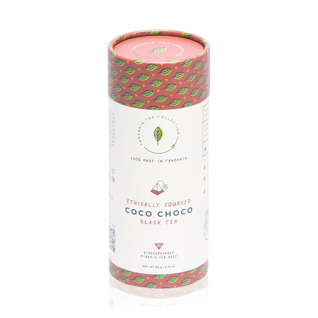 Schwarzer Tee vom Kilimandscharo mit Kakaoschalen aus Arusha und Kokosnussflocken aus Sansibar. Die etwas andere heiße Schokolade – ganz ohne Kalorien. Fügen Sie etwas Honig hinzu, um den süßen Kakaogeschmack hervorzuheben.