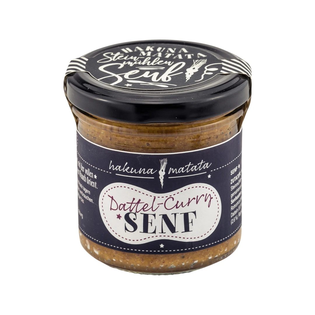 Der bekannte Steinmühlen Senf von Hakuna Matata aus Freiburg, verfeinert mit besten tunesischen Datteln und einer selbstkreierten Currymischung.