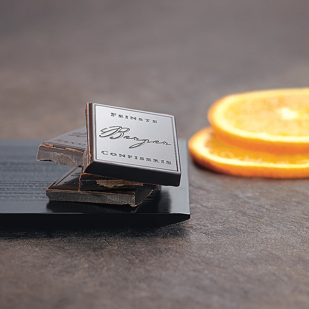 Mit dieser Edelbitter Orange Schokolade kaufen Sie ein von Berger Feinste Confiserie viel Liebe hergestelltes Produkt. Seit 1994 produzieren Christine und Hubert Berger hauchzart gefüllten Schokoladentafeln und als Abwandlung der klassischen Praline gedacht sind. Besonderes Merkmal sind die unterschiedlichen Geschmacksrichtungen, die kreativ und immer wieder neu komponiert werden. Feinste Füllungen werden sehr sorgfältig gekocht, in hauchdünne Schokoschälchen gegossen, mit zartschmelzender Schokolade überzogen und am Ende kunstvoll händisch garniert.