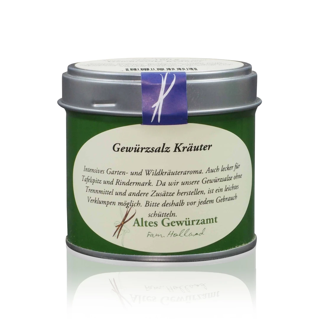 Mit diesem Gewürzsalz Kräuter kaufen Sie ein von Altes Gewürzamt Ingo Holland sorgfältig ausgewähltes und zusammengestelltes Gewürz in bester Qualität. Gründer Ingo Holland – selbst langjähriger Spitzen- und Sternekoch – hatte irgendwann genug davon nur Gewürze kaufen zu können, die nicht seinem Qualitätsanspruch gerecht wurden. So entschloss er sich, selbst auf die Such nach besten Qualitäten von Gewürzen aus aller Welt zu gehen und diese in seiner eigenen Manufaktur handwerklich, schonend und sorgfältig zu verarbeiten. Berühmt auch seine Gewürzmischungen für Chili con Carne oder das italienisch toskanische Gewürzmischung für Pasta.