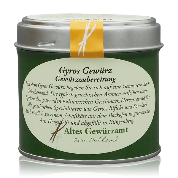 Mit dieser Gyros Gewürz 65 g kaufen Sie ein von Altes Gewürzamt Ingo Holland sorgfältig ausgewähltes und zusammengestelltes Gewürz in bester Qualität. Gründer Ingo Holland – selbst langjähriger Spitzen- und Sternekoch – hatte irgendwann genug davon nur Gewürze kaufen zu können, die nicht seinem Qualitätsanspruch gerecht wurden. So entschloss er sich, selbst auf die Suche nach besten Qualitäten von Gewürzen aus aller Welt zu gehen und diese in seiner eigenen Manufaktur handwerklich, schonend und sorgfältig zu verarbeiten. Toskanisches Pastagewürz von Altes Gewürzamt oder das allseits beliebte Curry Anapurna mit pikanter Schärfe.