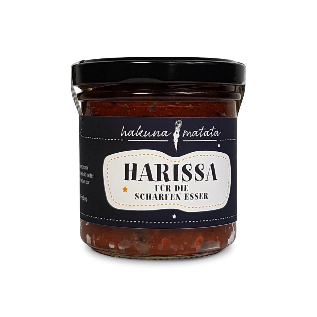 Harissa ist ein aus Nordafrika (Maghreb) stammendes traditionelles Würzmittel auf Chilibasis. Hakuna Matata verarbeitet die klassischen Zutaten Chili, Kreuzkümmel, Koriandersamen und Knoblauch mit Tomaten zu einer feurigen Würzpaste für scharfe Esser.