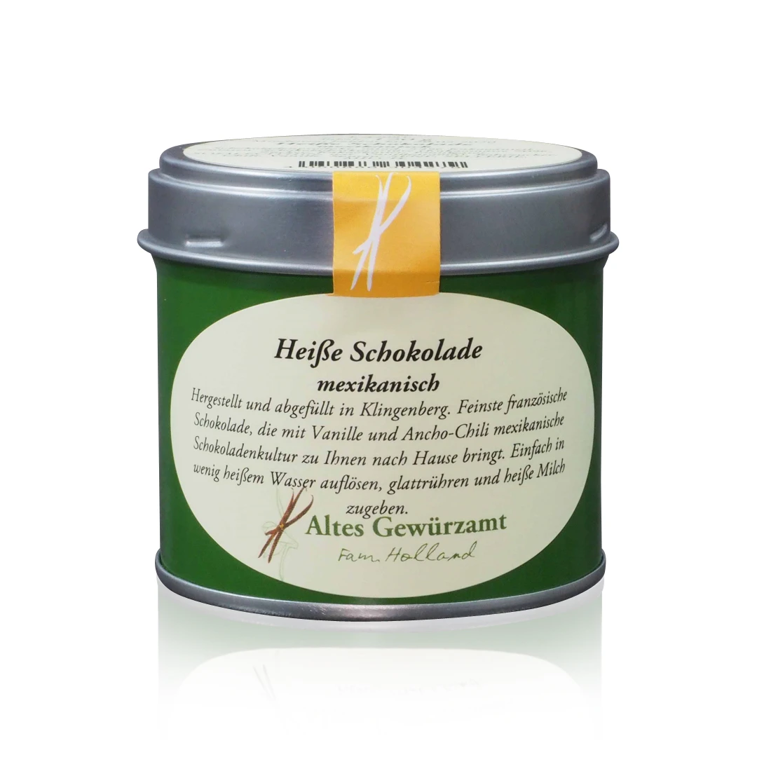 Mit dieser Heißen Schokolade Mexikanisch kaufen Sie ein von Altes Gewürzamt Ingo Holland sorgfältig ausgewähltes und zusammengestelltes Gewürz in bester Qualität. Gründer Ingo Holland – selbst langjähriger Spitzen- und Sternekoch – hatte irgendwann genug davon nur Gewürze kaufen zu können, die nicht seinem Qualitätsanspruch gerecht wurden. So entschloss er sich, selbst auf die Such nach besten Qualitäten von Gewürzen aus aller Welt zu gehen und diese in seiner eigenen Manufaktur handwerklich, schonend und sorgfältig zu verarbeiten. Berühmt auch seine Gewürzmischungen für Chili con Carne oder das italienisch toskanische Gewürzmischung für Pasta.