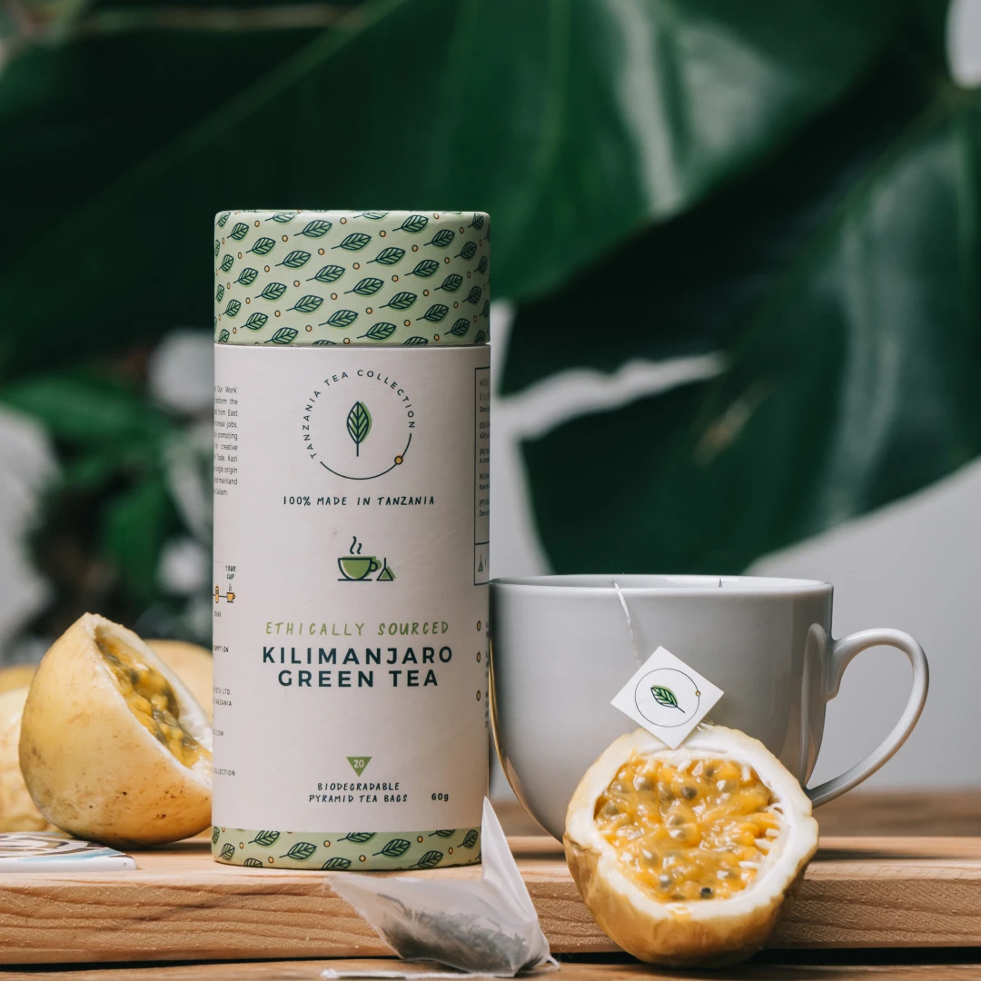 Mit diesem Kilimanjaro Green Tea Tee kaufen Sie ein von Kazi Yetu fair und nachhaltig hergestelltes Produkt. „Kazi Yetu“ in der Sprache der Swahili bedeutet „Unsere Arbeit“, was die Motivation dieses jungen Sozialunternehmens aus dem Ostafrikanischen Tansania sehr gut beschreibt. Ziel ist es nicht nur umweltverträglich und nachhaltig zu produzieren, sondern auch zum Wohle der Arbeiter die gesamte Wertschöpfung der Produkte vor Ort zu erhöhen. So werden sämtliche Rohstoffe lokal beschafft und alle Arbeitsschritte bis zum fertigen Produkt in Daressalam, dem wirtschaftlichen und kulturellen Zentrums Tansanias erledigt.