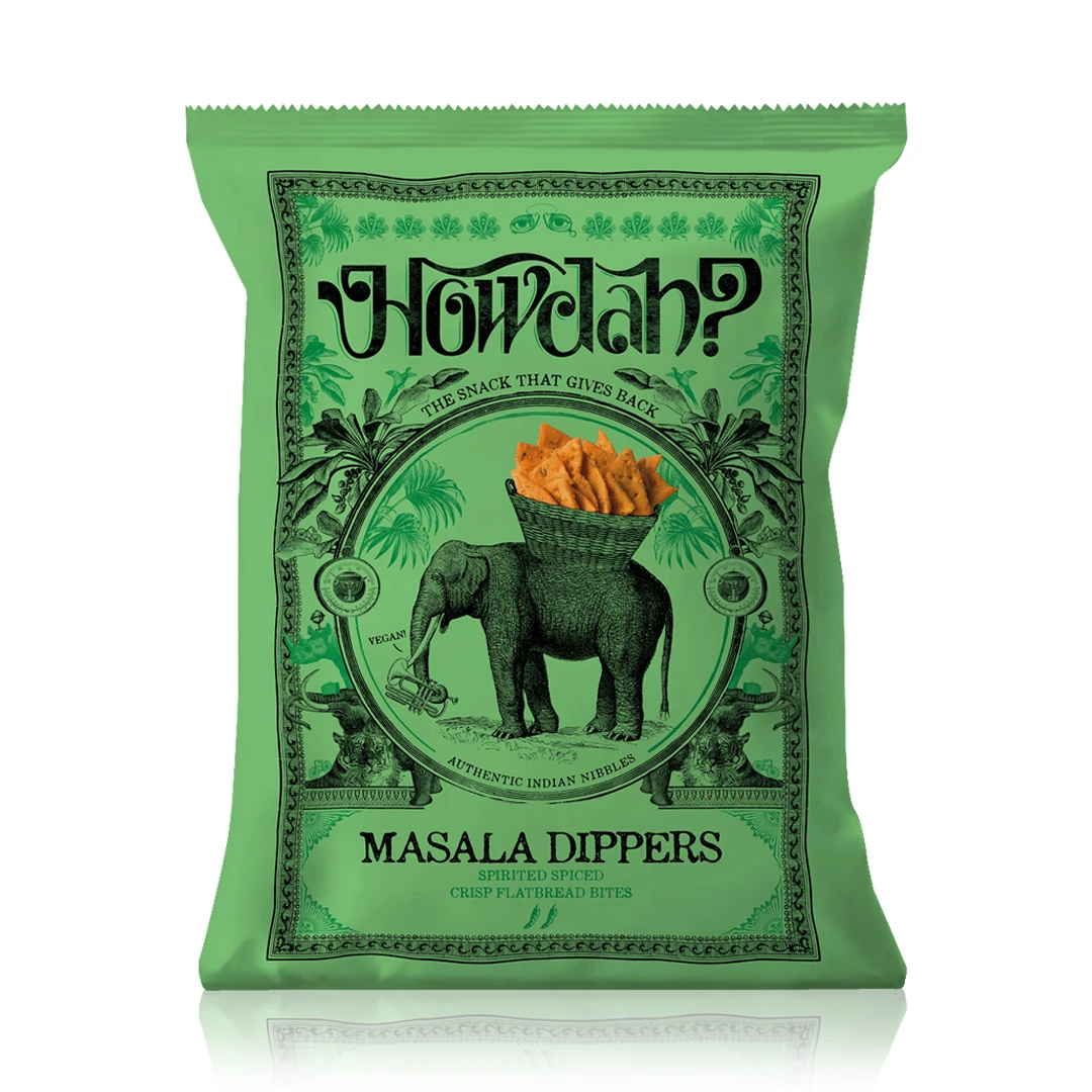 Howdah Masala Dippers. Alles begann als Traum die unglaublichen Snacks aus Indien nach Großbritannien zu bringen und entwickelte sich bald zu etwas viel Größerem: einer Mission, Essen als Kraft für das Gute zu nutzen. Überall auf der Welt bringt es Menschen zusammen, ob an einem Straßenstand oder am Familientisch. Und so wollte Falu Shah, die Gründerin von Howdah ein Teil davon sein indem sie Freunde und Familien um die lebendigen Aromen der exotischsten Snacks Indiens versammelt und im Gegenzug Kindern auf der ganzen Welt helfen, ihr Potenzial zu entfalten.