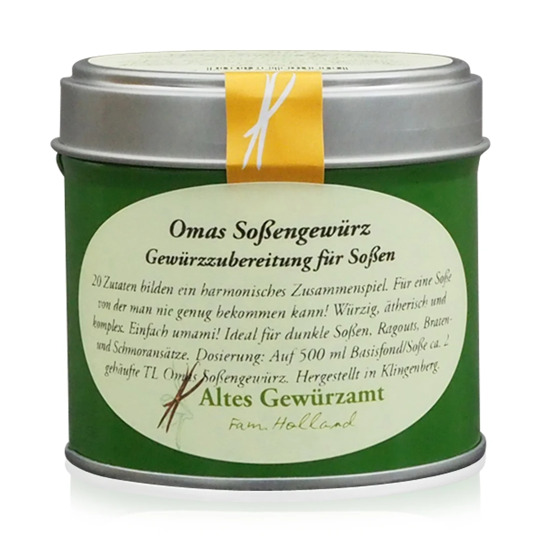 Mit dieser Omas Soßengewürz kaufen Sie ein von Altes Gewürzamt Ingo Holland sorgfältig ausgewähltes und zusammengestelltes Gewürz in bester Qualität. Gründer Ingo Holland – selbst langjähriger Spitzen- und Sternekoch – hatte irgendwann genug davon nur Gewürze kaufen zu können, die nicht seinem Qualitätsanspruch gerecht wurden. So entschloss er sich, selbst auf die Suche nach besten Qualitäten von Gewürzen aus aller Welt zu gehen und diese in seiner eigenen Manufaktur handwerklich, schonend und sorgfältig zu verarbeiten.
