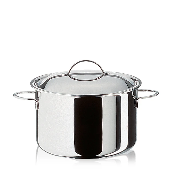 Das bewährte 5-lagige Mehrschichtmaterial (Edelstahl 18/0 außen, dreifacher Aluminiumkern & Edelstahl 18/10 innen) von Spring verteilt die Wärme schnell und gleichmäßig bis zum Rand des Topfes. Es ist für alle gängigen Kochfelder (Kochplatten, Gas, Glaskeramik/Ceran, Induktion) geeignet.