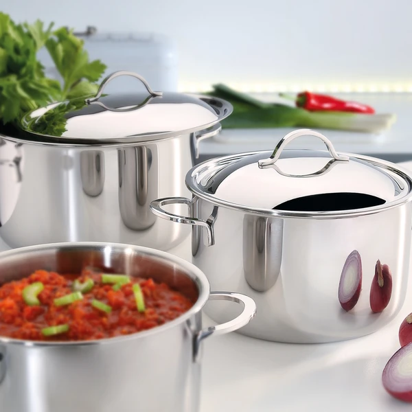 Die Kochgeschirr-Linie Cristal aus dem Haus Spring steht für das, was sie verspricht: der hochglanzpolierte Edelstahl der Töpfe, Pfannen & Deckel fällt sofort angenehm ins Auge. Seit mehr als 25 Jahren ist das zeitlose Design erfrischend klar in seiner Formsprache. Selbstverständlich sind auch Spring Cristal Töpfe & Pfannen aus dem bewährten, induktionstauglichen Mehrschichtmaterial mit Edelstahl & Aluminium hergestellt.