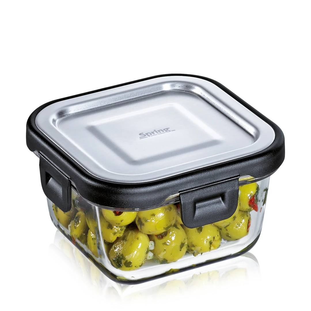 Hochwertige Vorratsdose aus Borosilikatglas mit Edelstahldeckel