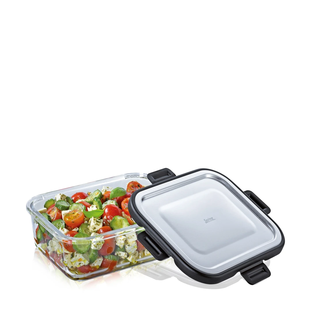 Hochwertige Vorratsdose aus Borosilikatglas mit Edelstahldeckel