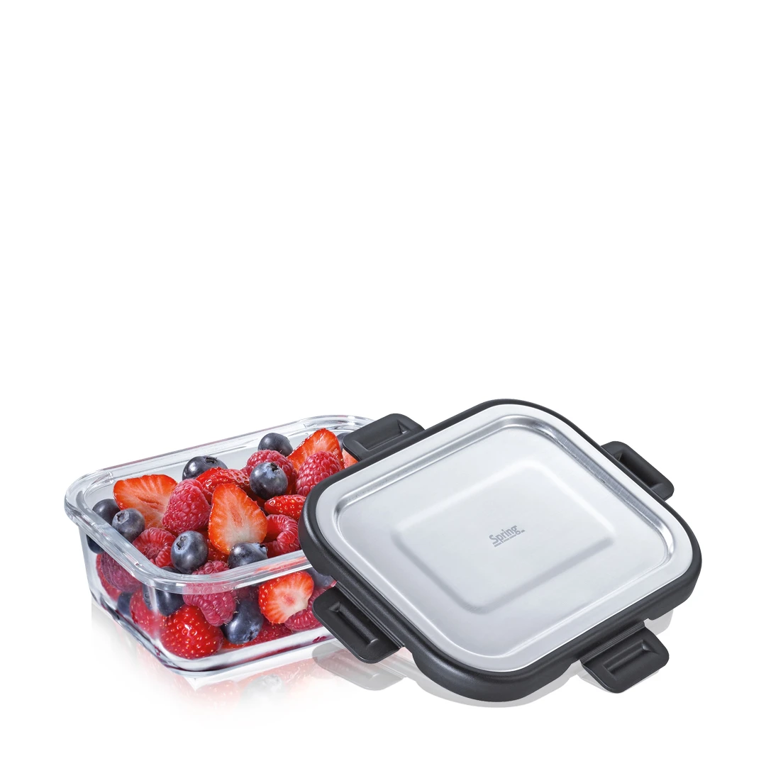 Hochwertige Vorratsdose aus Borosilikatglas mit Edelstahldeckel