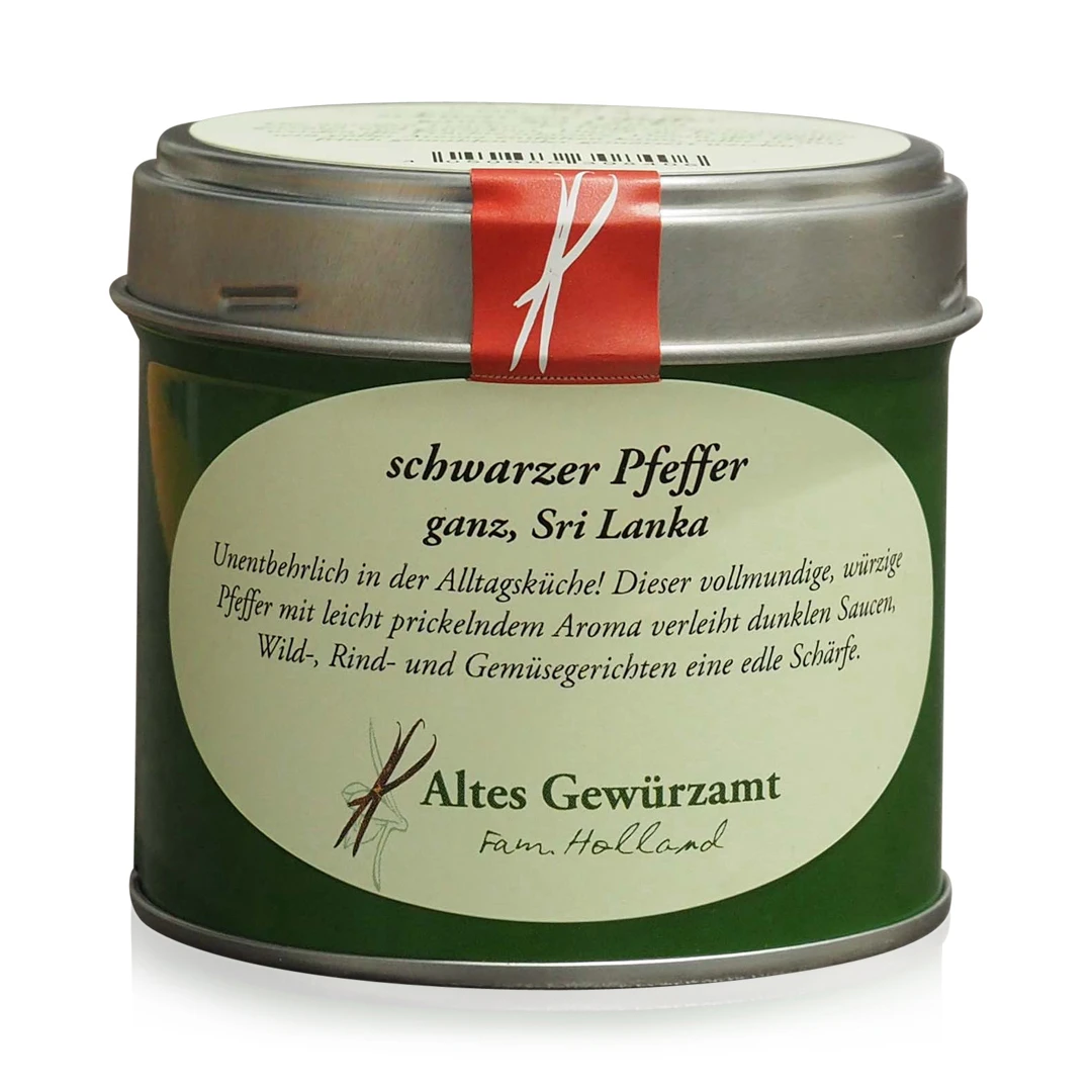 Mit diesem schwarzen Sri Lanka Pfeffer kaufen Sie ein von Altes Gewürzamt sorgfältig ausgewähltes und zusammengestelltes Gewürz in bester Qualität. Gründer Ingo Holland – selbst langjähriger Spitzen- und Sternekoch – hatte irgendwann genug davon nur Gewürze kaufen zu können, die nicht seinem Qualitätsanspruch gerecht wurden. So entschloss er sich, selbst auf die Such nach besten Qualitäten von Gewürzen aus aller Welt zu gehen und diese in seiner eigenen Manufaktur handwerklich, schonend und sorgfältig zu verarbeiten. Berühmt auch seine Gewürzmischungen für Chili con Carne oder das italienisch toskanische Gewürzmischung für Pasta.