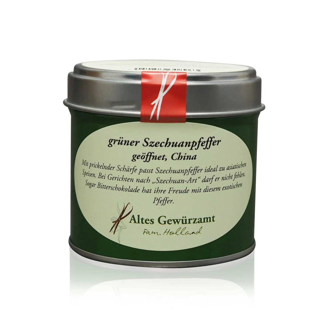 Mit diesem Grünen Szechuan Pfeffer kaufen Sie ein von Altes Gewürzamt Ingo Holland sorgfältig ausgewähltes und zusammengestelltes Gewürz in bester Qualität. Gründer Ingo Holland – selbst langjähriger Spitzen- und Sternekoch – hatte irgendwann genug davon nur Gewürze kaufen zu können, die nicht seinem Qualitätsanspruch gerecht wurden. So entschloss er sich, selbst auf die Such nach besten Qualitäten von Gewürzen aus aller Welt zu gehen und diese in seiner eigenen Manufaktur handwerklich, schonend und sorgfältig zu verarbeiten. Berühmt auch seine Gewürzmischungen für Chili con Carne oder das italienisch toskanische Gewürzmischung für Pasta.