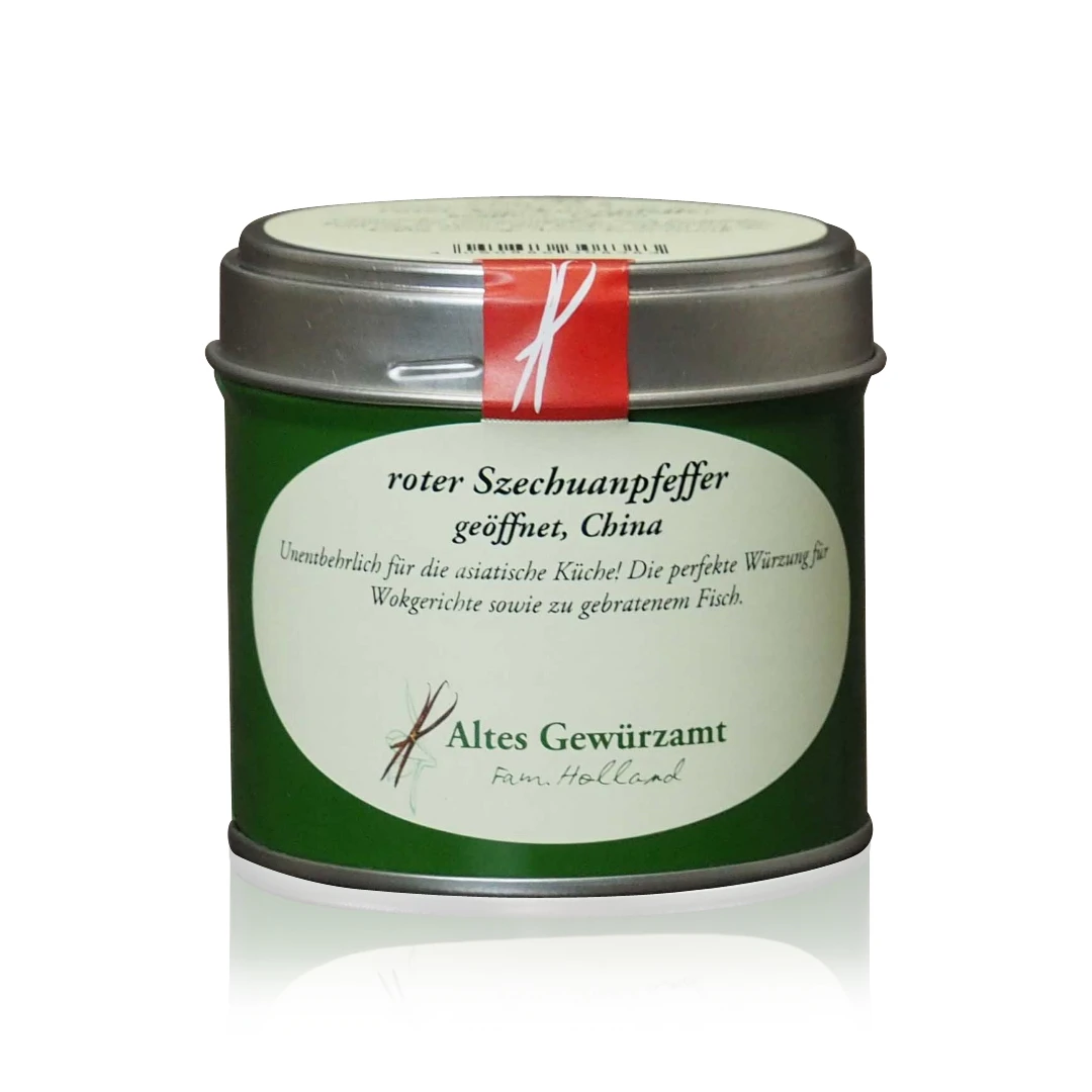 Mit diesem Roten Szechuan Pfeffer kaufen Sie ein von Altes Gewürzamt Ingo Holland sorgfältig ausgewähltes und zusammengestelltes Gewürz in bester Qualität. Gründer Ingo Holland – selbst langjähriger Spitzen- und Sternekoch – hatte irgendwann genug davon nur Gewürze kaufen zu können, die nicht seinem Qualitätsanspruch gerecht wurden. So entschloss er sich, selbst auf die Such nach besten Qualitäten von Gewürzen aus aller Welt zu gehen und diese in seiner eigenen Manufaktur handwerklich, schonend und sorgfältig zu verarbeiten. Berühmt auch seine Gewürzmischungen für Chili con Carne oder das italienisch toskanische Gewürzmischung für Pasta.