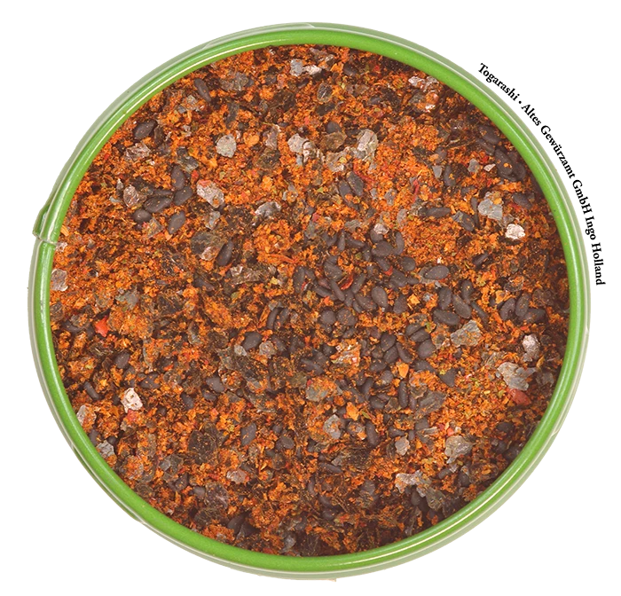 Shichimi Togarashi heißt „Sieben-Gewürz-Chilipfeffer“ und ist das klassische Suppengewürz für die berühmte japanische Misosuppe oder die Nudelsuppen mit Udon. Aber auch auf Yakitori, den kleinen Fisch-, Fleisch- und Gemüse-Spießen, die in den kleine Garküchen verkauft werden, darf Shichimi Togarashi nicht fehlen.