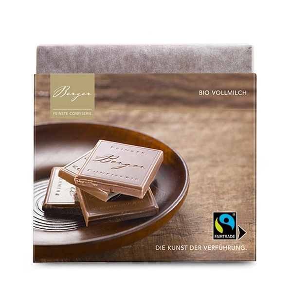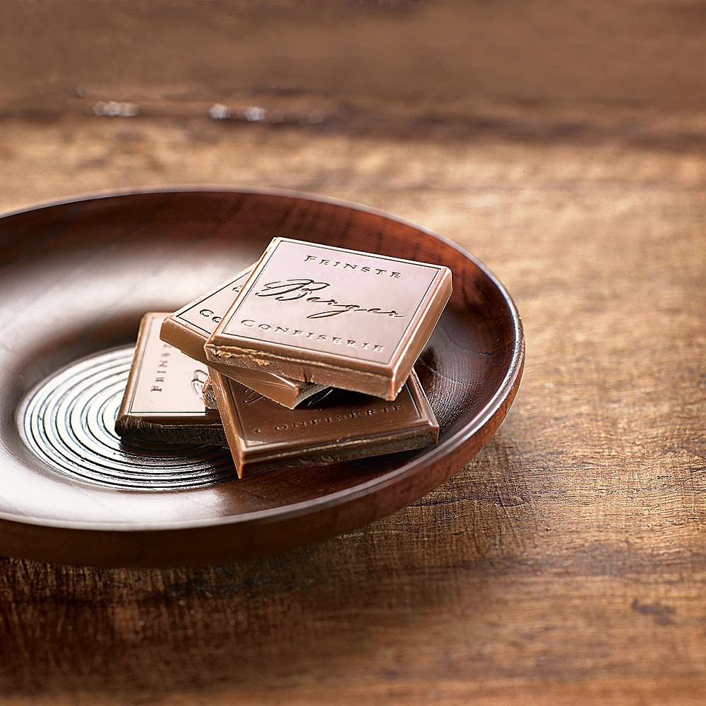 Mit dieser Vollmilch-Schokolade kaufen Sie ein von Berger Feinste Confiserie viel Liebe hergestelltes Produkt. Seit 1994 produzieren Christine und Hubert Berger hauchzart gefüllten Schokoladentafeln und als Abwandlung der klassischen Praline gedacht sind. Besonderes Merkmal sind die unterschiedlichen Geschmacksrichtungen, die kreativ und immer wieder neu komponiert werden. Feinste Füllungen werden sehr sorgfältig gekocht, in hauchdünne Schokoschälchen gegossen, mit zartschmelzender Schokolade überzogen und am Ende kunstvoll händisch garniert.